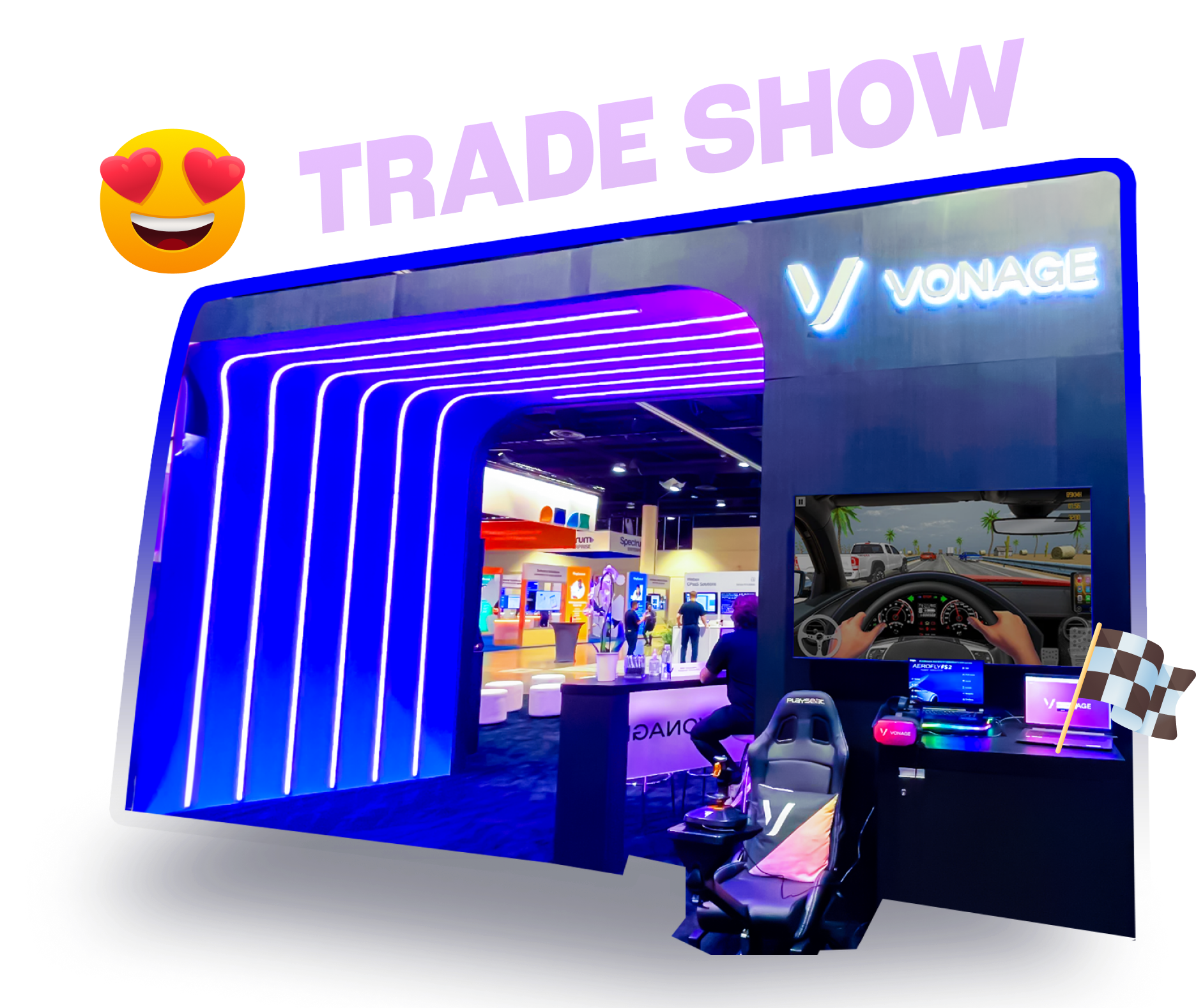 Boost trade show leads and foot traffic with interactive booth games like AI challenges, claw machines, and VR simulators.
