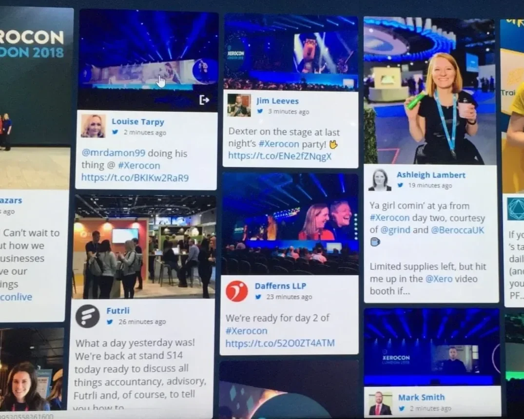 Generate a steady stream of branded content in attendees’ social feeds during and after the show.