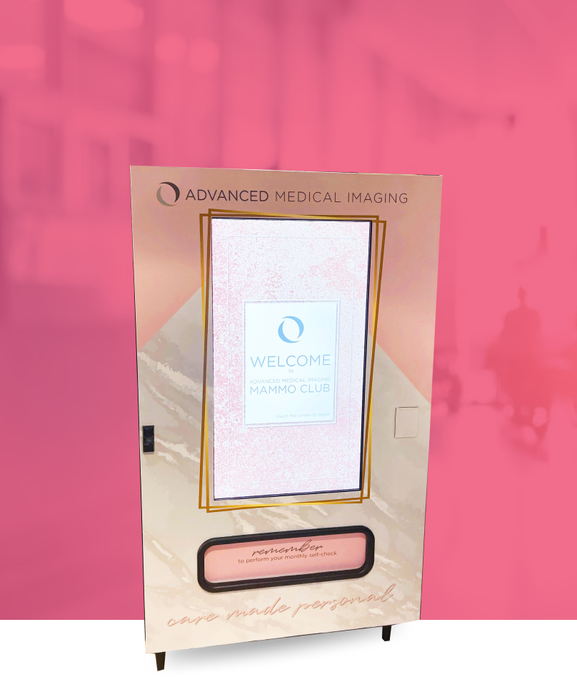 An impressive, customizable vending machine with a 42” centered touch screen.
